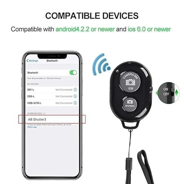 - lightweight Design: Bluetooth controllers may easily fit in your pocket or camera bag because they are usually lightweight and portable. There are two buttons on the remote for shooting pictures and films. On an Android device, press the little button; on an iPhone, press the large button. There is an additional ON/OFF switch on it.
