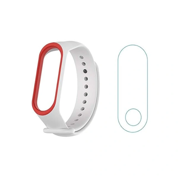 Dual Color Replacement Strap Compatible with Mi band 3 Watch Belt Strap with Screen Guard Protector Accessories Combo Pack(White Red)
