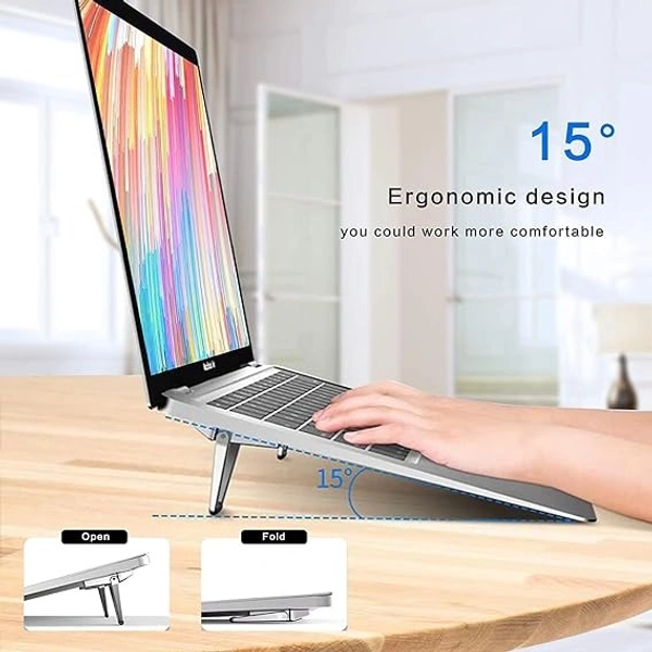 - Efficient heat dissipation-Adjustable Folding laptop stand with effective heat dissipation have a lifting range of 15°–25°. Simply select the optimal angle for your needs. The central area effectively dissipates heat and continuously safeguards your laptop.