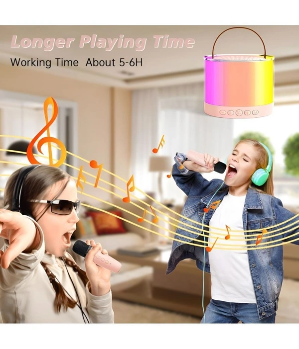 - ♪【Portable & Long Time Use】No matter where you go, our small portable wireless karaoke microphone and speaker will go to the party with you. Built-in 2000 mAh rechargeable battery ensures 5-6 hours of fun. Enjoy non-stop fun. Birthday parties, outdoor events, travel...This portable wireless speaker and microphone will meet all your ""fun singing"" needs