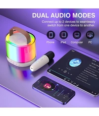 - ♫【Fun Voice Change & Multi-Colored LED Lights 】Professional audio processor and tuning system create an amazing KTV live sound environment and wonderful echo reverberation. Using the 4 different effects to change your voice and provides more fun for your kids (including Original, Female voice, Male voice, Monster voice). LED lights dancing with the rhythm of the music, creating a fun atmosphere.
