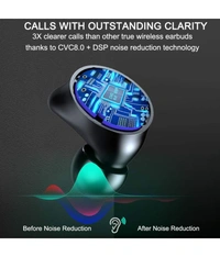 【Massive 3000 MAH Smart Charging Case/POWERBANK】: Adopts the premium case to protect your wireless earbuds and looks fashionable. With the individual LED display on the case can help check the power of L/R earbud and charging case at any time. The wireless Bluetooth earbuds deliver 5hrs listening time and 3.5hrs talk time on single charge, total 250hrs playtime with massive 3000 MAH charging case/POWERBANK You can also CHARGE YOUR PHONE