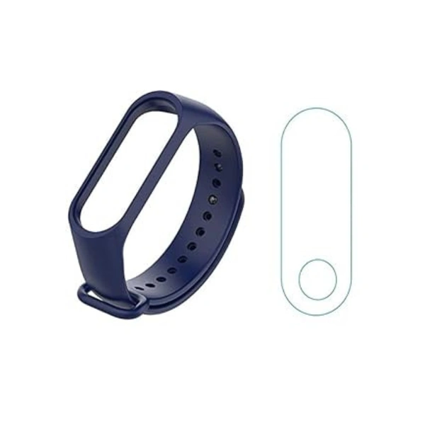 Replacement Strap Compatible with Mi Band 3 Navy/Dark Blue Strap with Screen Protector Combo Accessories | Replacement Band for Mi Band 3 Adjustable Belt