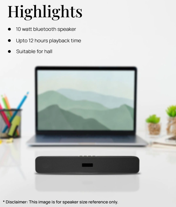SoundBar 10 W Bluetooth Speaker Bluetooth v5.0 with USB,SD card Slot,Aux Playback Time 12 hrs